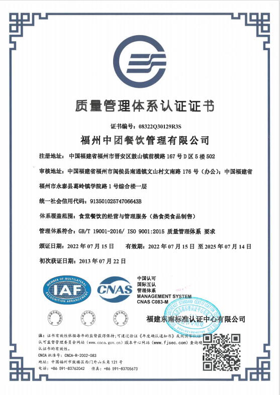 您現(xiàn)在的位置:福州中團(tuán)餐飲管理有限公司 >> 關(guān)于我們 >> 企業(yè)資質(zhì)